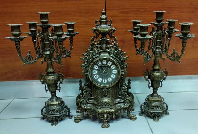 Продам красивый к-т для камина, письменного стола, дачи и т.д. материал: латунь, бронза. часы: кварц высота: 41 см, вес одного подсвечника более 2-х кг. цена за комплект продан0 руб., пересыл по РФ с МЕНЯ!