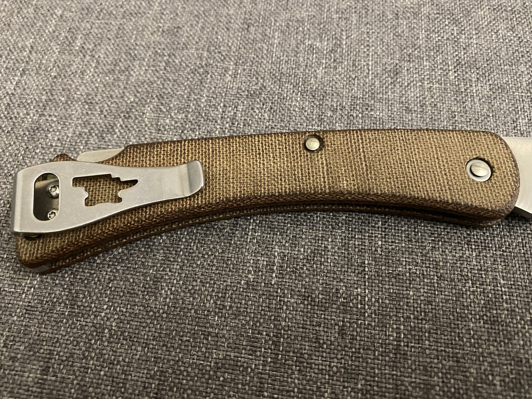 Нож б/у. На клинке присутствуют волосяные царапки видные далеко не под каждым углом. Потерта клипса. Точился. В остальном без нареканий.